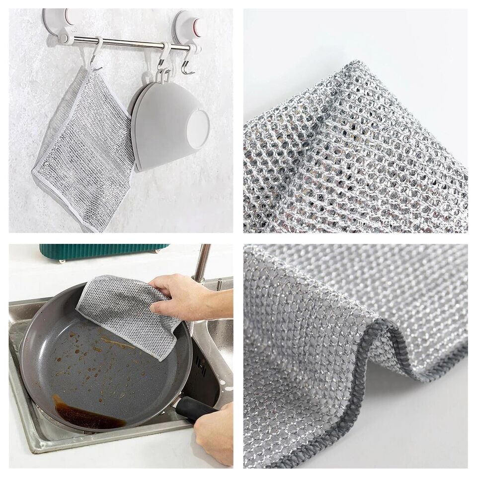 【Multipurpose Wire Dishwashing Rags】It uses advanced weaving technology and high-quality metal wire material, scrub and clean! safe for use on all kitchen surfaces: Covers dishes, pots, pans, countertops, and cooktops, Its a good helper in your kitchen.