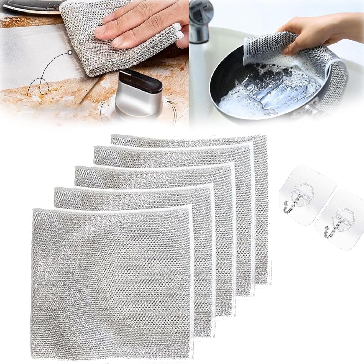 SHINE GENIX Non-Scratch Dish Wash Cloth, Steel Wire Dish Cloth, Wire Dishwashing Rags Stainless Steel Scrubber (Buy 10 Get 10 Free)